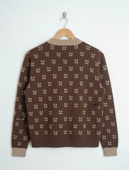 Loose Fit Short Printed Cardigan. Button-Though Opening Along With pattern all over , Sleeve Hem And Body Hem