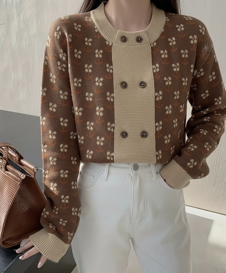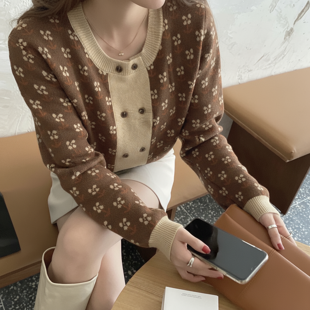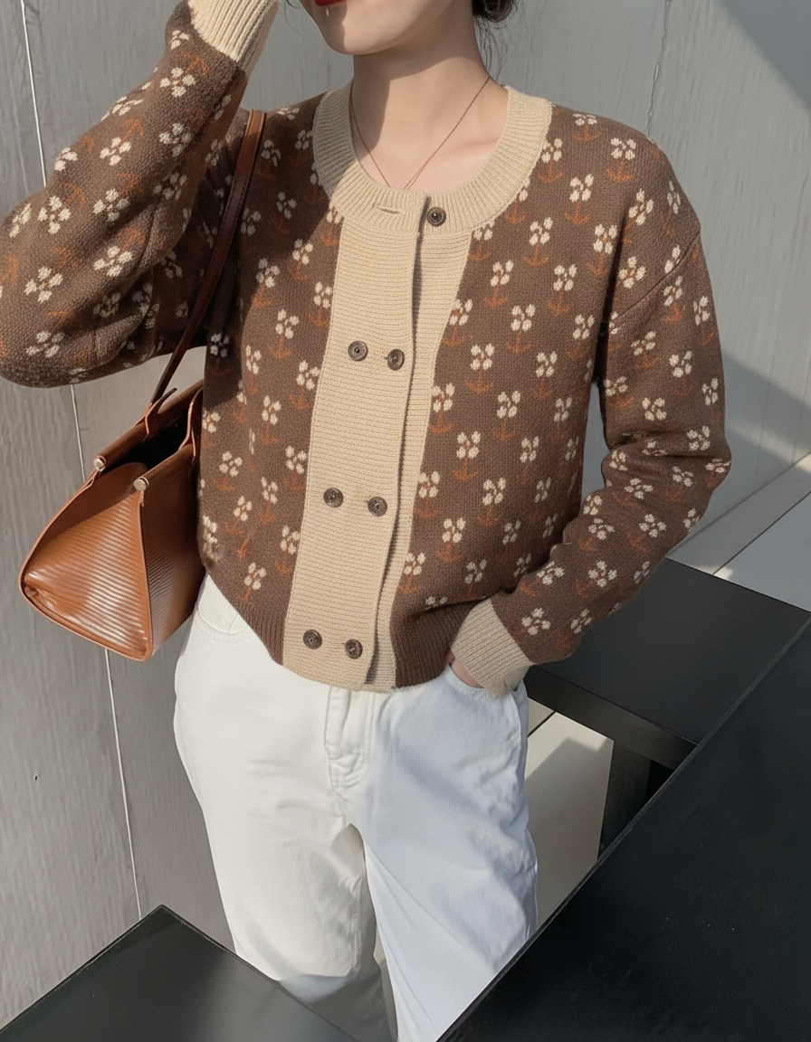 Premium Material Rabbit Wool Composition Cardigan/Sweater Brown in Colour