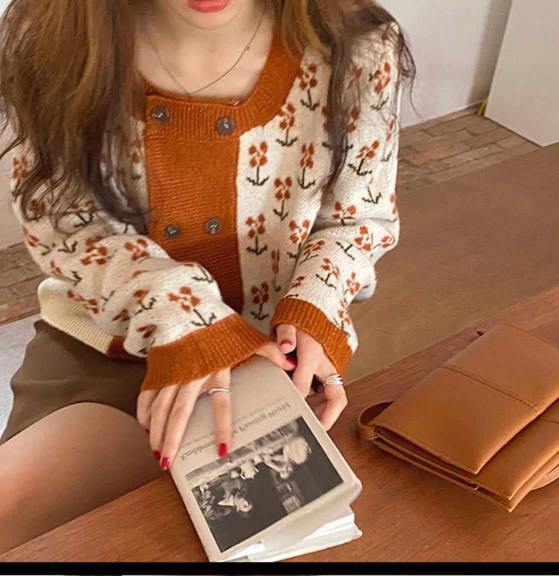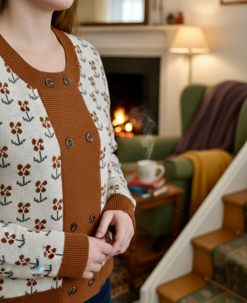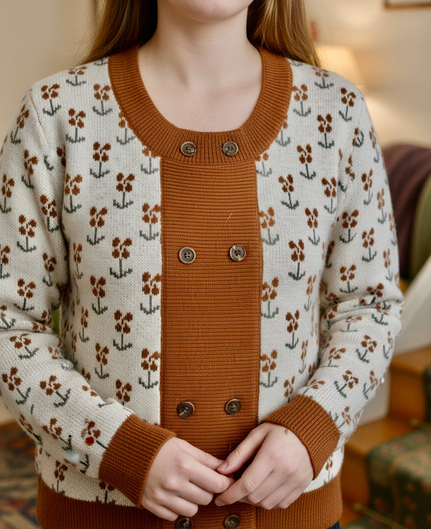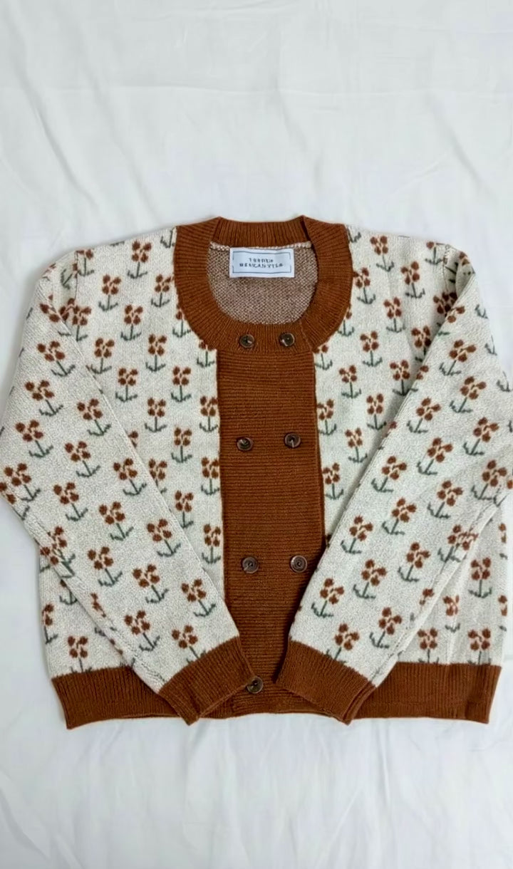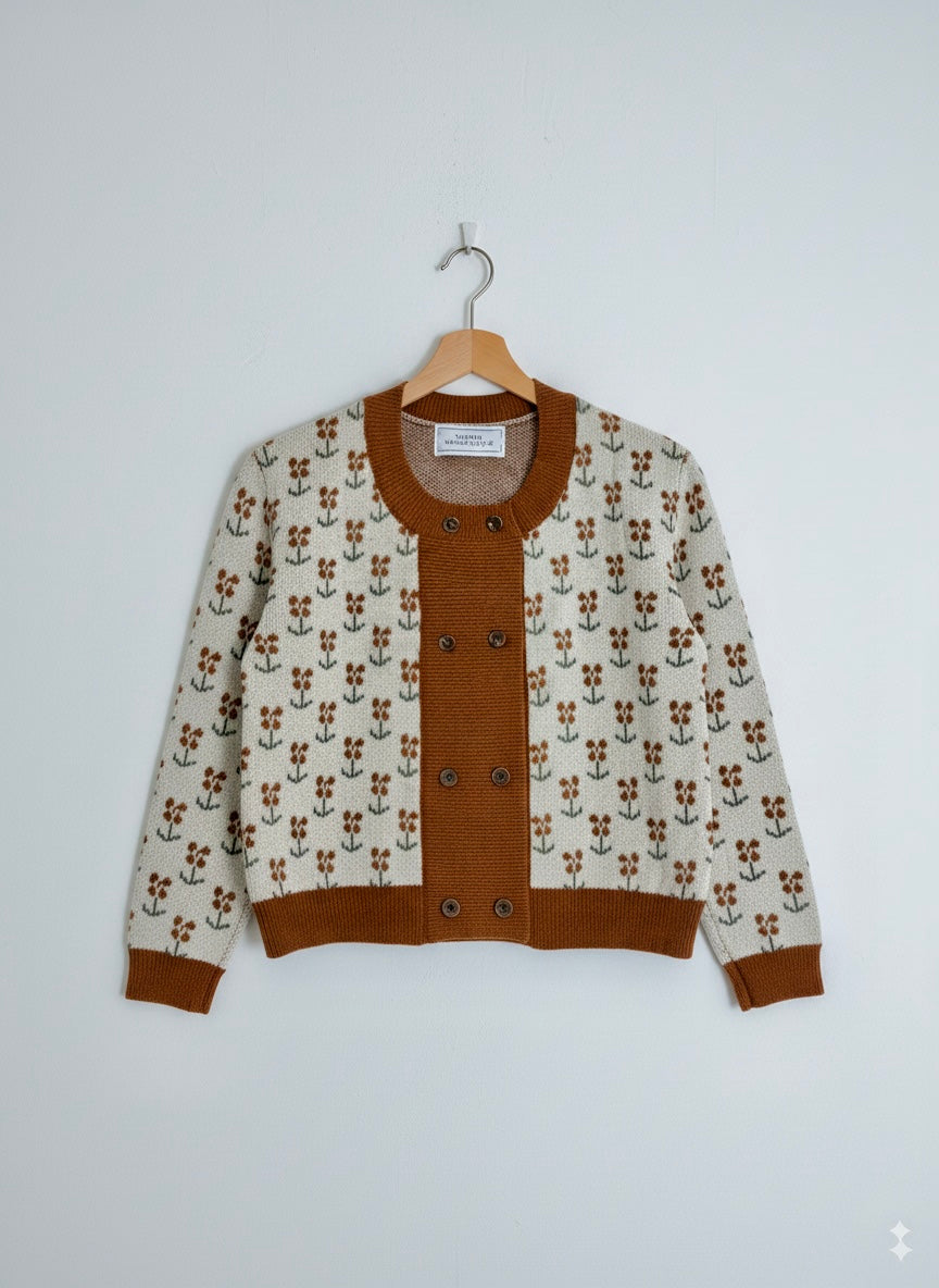 Premium Material Wool Composition Cardigan/Sweater Rust and White in Colour