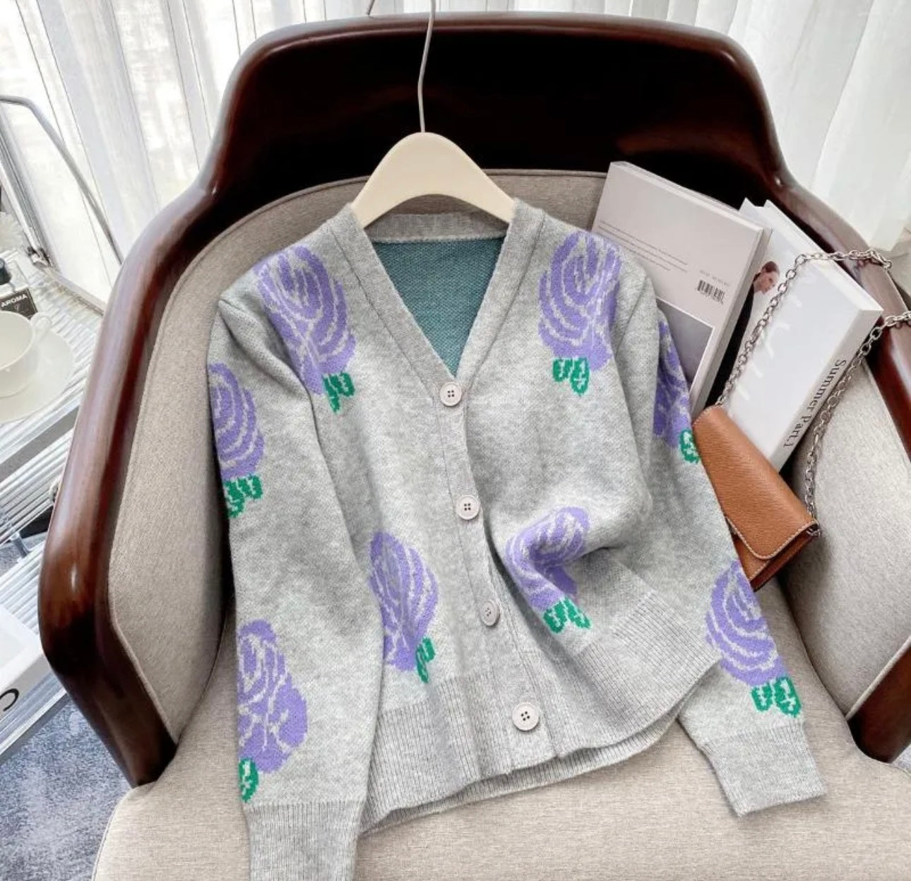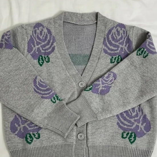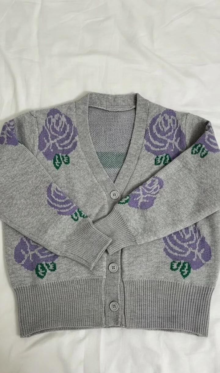 Loose Fit Short Printed Cardigan. Button-Though Opening Along With pattern all over , Sleeve Hem And Body Hem