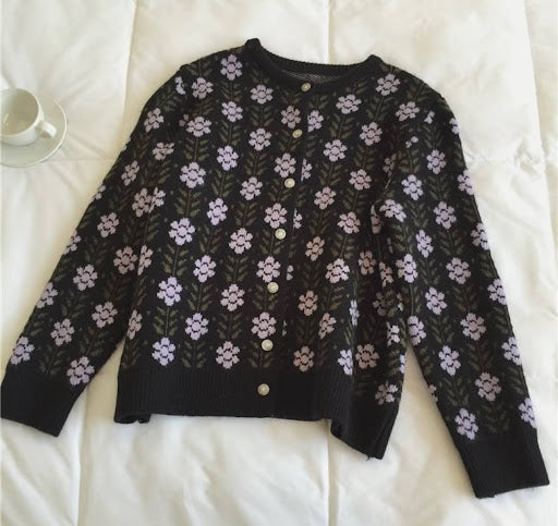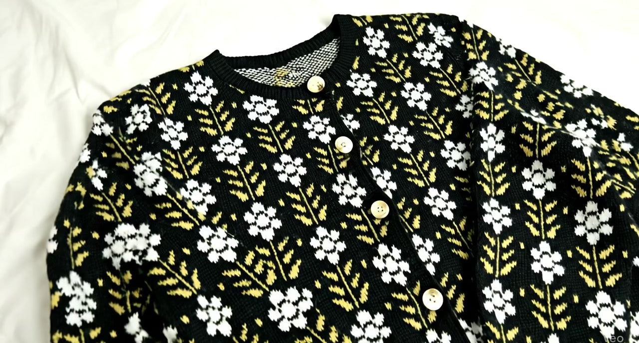 Loose Fit Printed Cardigan. Button-Though Opening Along With pattern all over , Sleeve Hem And Body Hem